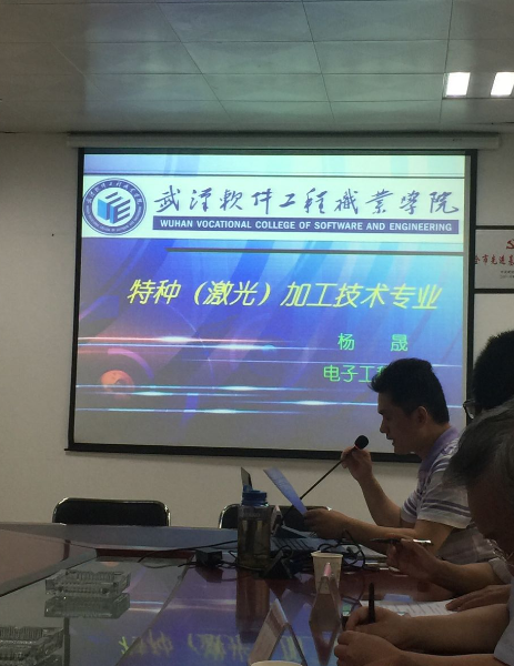 會上首先由湖北省激光學會秘書長,武漢?中國光谷激光行業協會秘書長劉善琨、武漢軟件工程職業學院電子工程學院副院長何瓊講話,然后由電子工程學院激光教研室楊晟主任作了關于《武軟工院特種(激光)專業對接行業需求發展現狀介紹》、《武軟工院特種(激光)專業實訓基地建設》、《武軟工院特種(激光)專業教學資源庫建設》、《武軟工院特種(激光)專業激光加工技術協同創新中心社會服務功能》等報告,最后入會的領導和專家進行了熱情洋溢的討論,提出了許多有建設性的建議,達到了預期的效果。